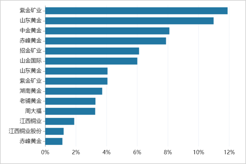 ▲黄金股ETF(159562)重仓股,来源:Wind