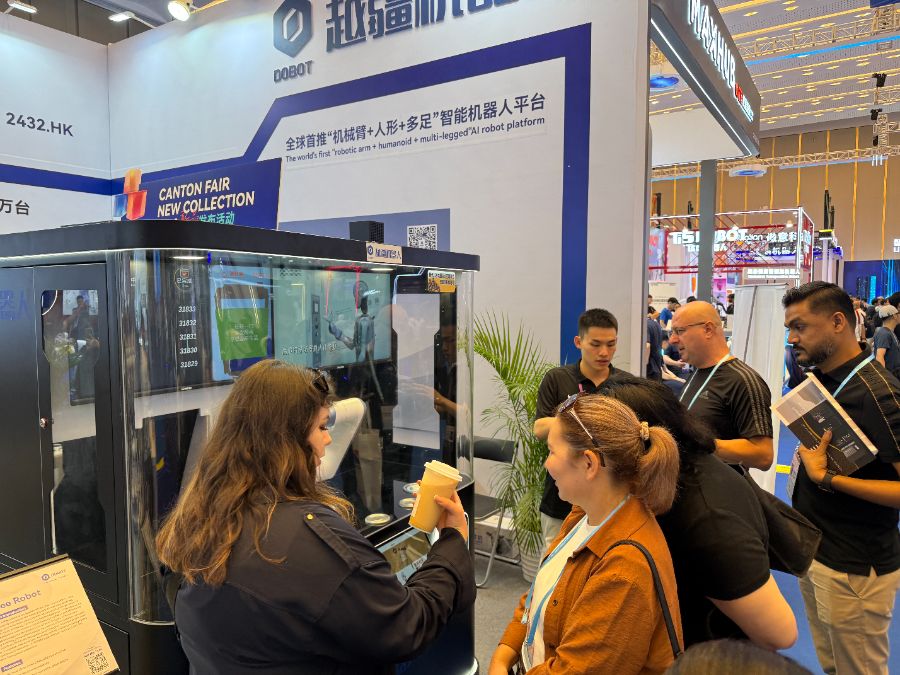 以上海氦豚机器人科技有限公司为例,其COFE+咖啡机器人展位在展会期间热度持续不减。创始人韩兆林表示,尽管上半年美国市场营收近乎空白,但其全球销售量仍实现同比翻倍,其中广交会期间的销量就贡献了1/10。就在本届广交会前一天,该企业又签约了300多万美元订单,“老客户复购加新客户拓展,预计本届展会期间销量将再迎来显著增长。”