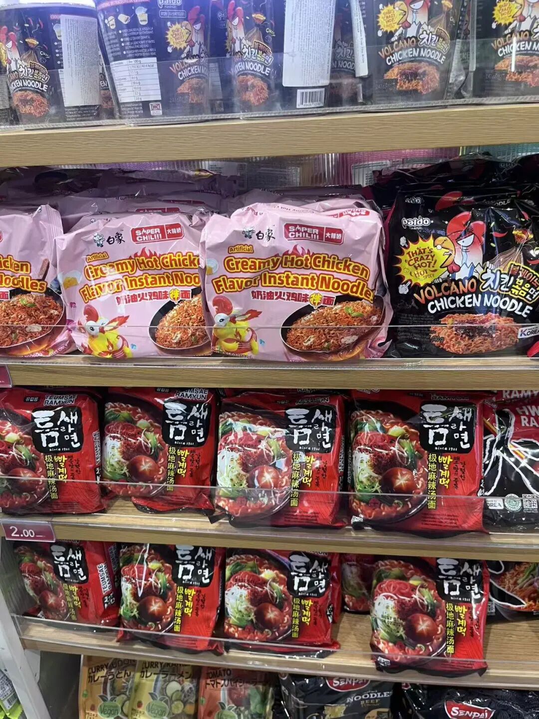 尤其是在那不勒斯,光西班牙街区,就有三家名创优品店铺。每个店铺的侧重点都不太一样。Toledo地铁站附近的店面最大,甚至配备了保安,或许是考虑到当地消费者对生活用品的硬需求,主要侧重于零食饮料,趁着三养火鸡面在YouTube和TikTok翻红之际及时布货,甚至上架了白象的火鸡面。