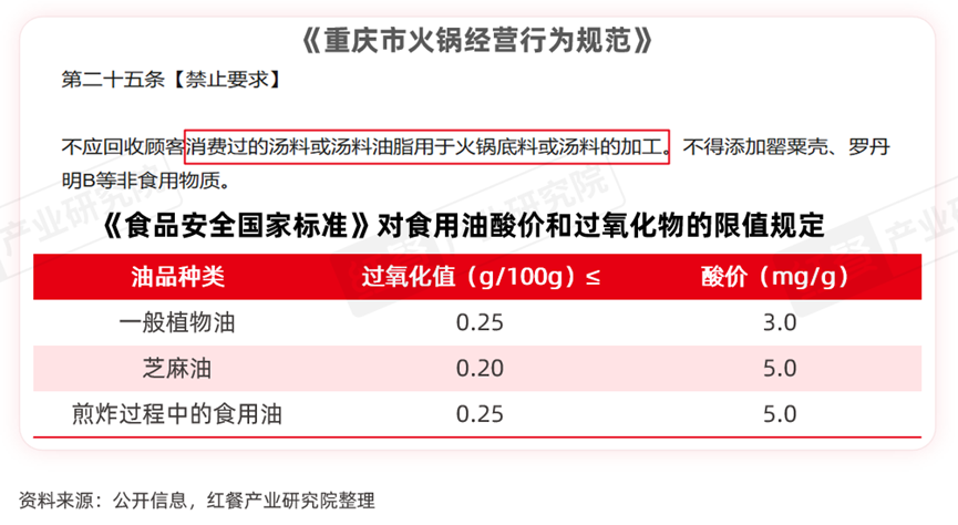 红餐产业研究院研究发现,传统的老油是重庆老火锅地道风味的核心载体。然而,老油工艺依赖经验化操作,难以实现工业化标准生产。除此之外,锅底久煮可能会导致食用油过氧化值和酸价过高,不符合食品安全规范要求。