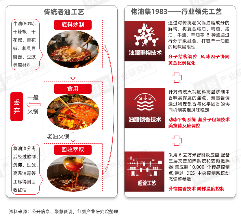 针对重庆老火锅传统工艺与现代食品安全标准间的核心矛盾,头部供应链企业正加速技术破局。作为深耕火锅工业化的代表,聚慧餐调通过自主研发的佬油集1983产品体系,率先提出“新油老味”的工业化解决方案,彻底规避老油食安风险。