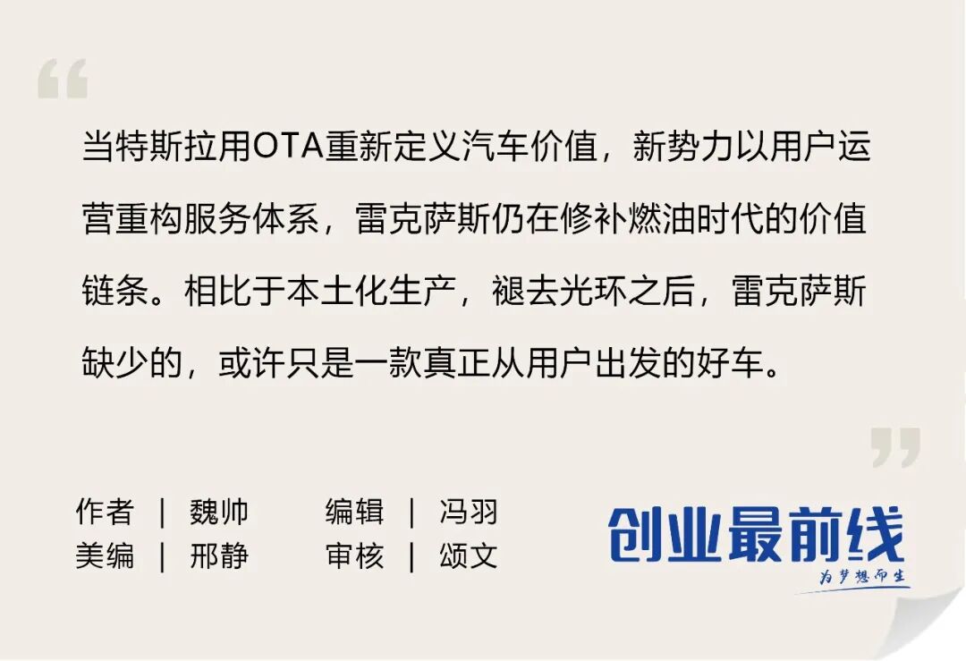 当特斯拉用OTA重新定义汽车价值,新势力以用户运营重构服务体系,雷克萨斯仍在修补燃油时代的价值链条。相比于本土化生产,褪去光环之后,雷克萨斯缺少的,或许只是一款真正从用户出发的好车。