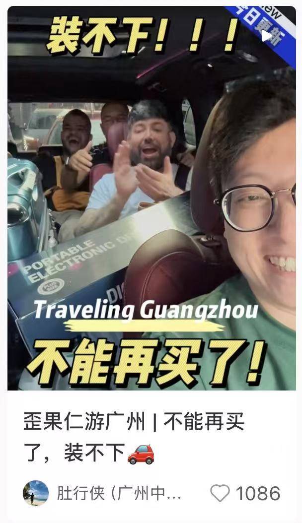 何鹏飞最近在网络上小火了一把。他的社媒主页上,一条名为“歪果仁游广州,不能再买了!装不下”的Vlog获得上千点赞。