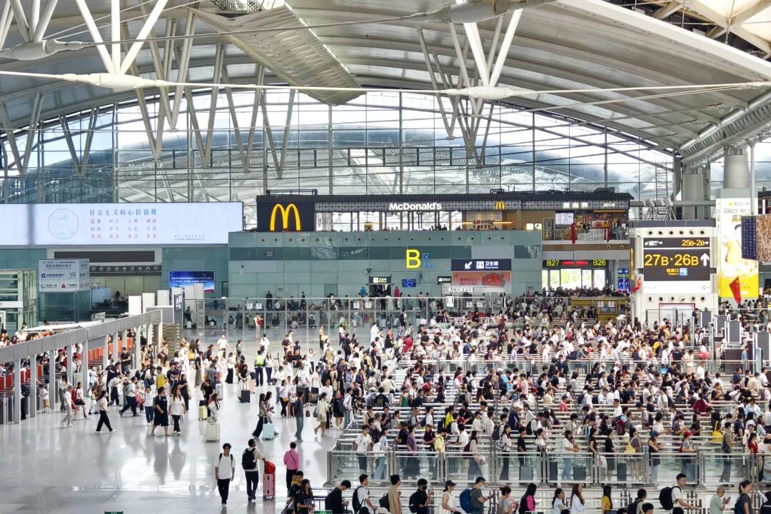 10月1日当天,车站开行列车达1155列,高峰期平均每50秒接发一趟列车,甚至出现17趟列车同时在屏幕上显示检票的壮观场景。