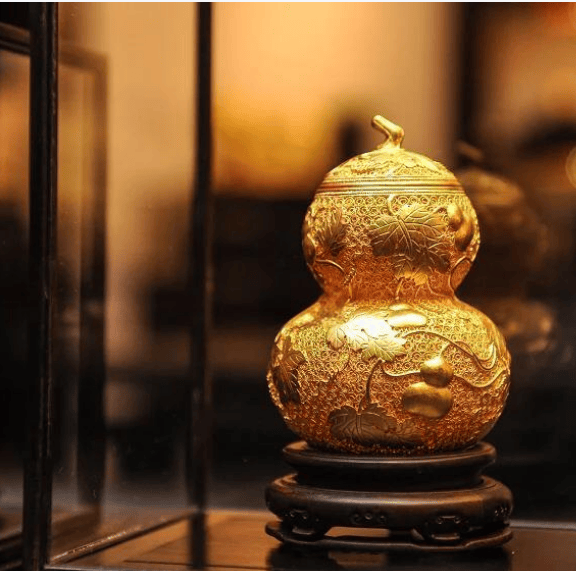 另外,老铺黄金的核心经营理念是把"古法金"从工艺变成了文化符号。它手握花丝镶嵌、金胎烧蓝等9种非遗工艺,单件作品需匠人耗时超600小时,比如一款花丝八宝吊坠,要手工编织 0.2mm的金丝,成品误差控制在0.01mm 以内,这种复杂度让它的工费能卖到300元/克,是周大福(80元/克)的3倍多。