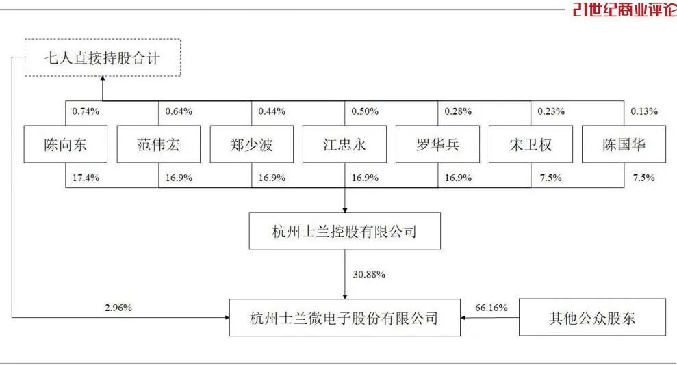 七人组成实际控制人,截至2024年底,共持有士兰微33.84%股份。