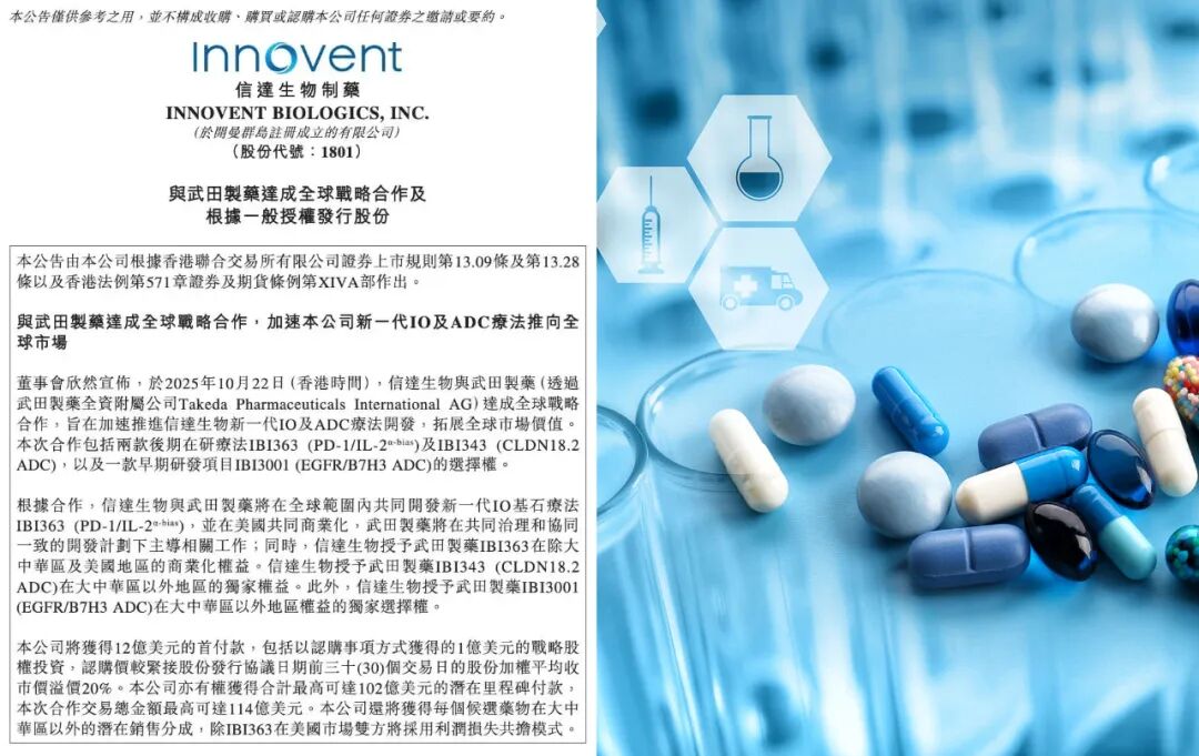 10月22日,信达生物宣布与武田制药合作,共同开发癌症治疗药物,总金额高达114亿美元,折合人民币超800亿元,创下中国生物医药对外授权交易的最高纪录。