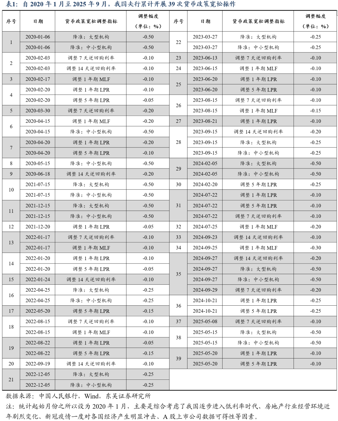 首先,我们梳理出自2020年1月至2025年9月,我国央行累计开展了39次货币政策宽松操作。