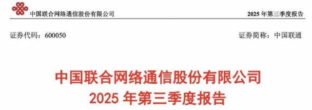 10月22日晚间,中国联通还公布了2025年前三季度业绩。