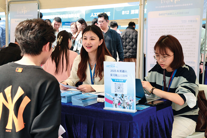 在 向南而行·南粤春暖 2025年深圳市南山区新春大型招聘活动暨猎头大会上,企业负责人与求职者交流(2025年2月18日摄) 毛思倩摄 / 本刊