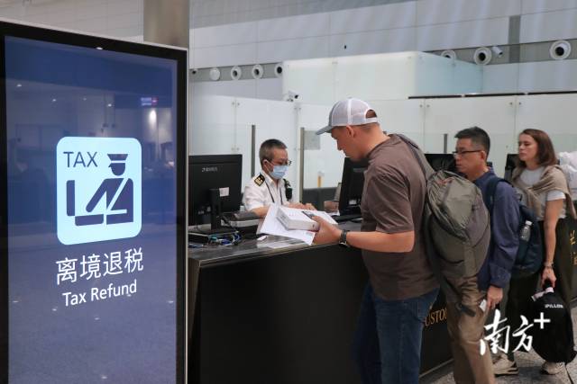 10月20日,在广州白云国际机场出境申报台前,不少外籍旅客正在办理离境退税业务。“海关工作人员用流利的英语解答了我对退税申请单上退税金额的疑惑,零障碍的沟通交流让我感到很温暖。在他们的帮助下,我顺利办理了这笔超3000元的退税。”外籍旅客皮蒙特尔表示。