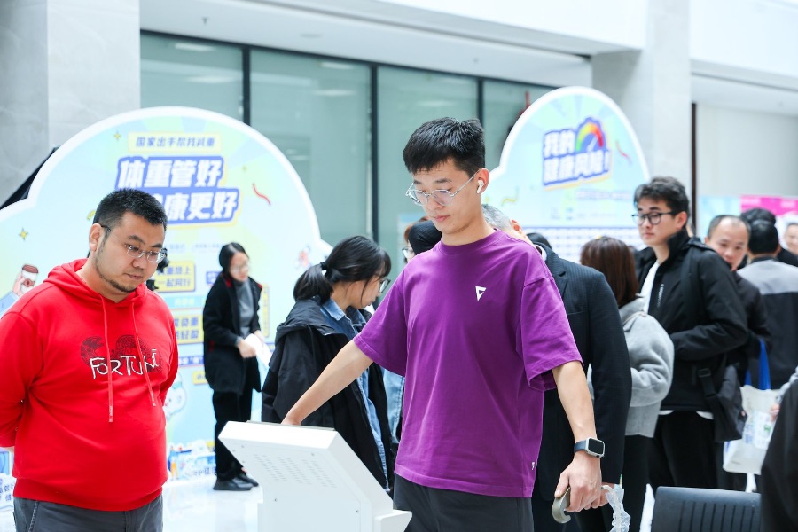 在“认识肥胖体测区”,员工通过专业设备实时测量BMI、腰围、体脂率等指标,生成个性化健康报告。