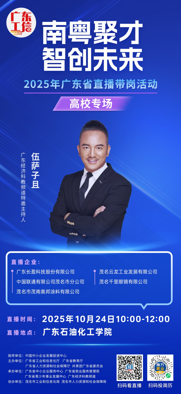 2025年广东省直播带岗活动将在2025年7月-12月开展40场线上招聘会。本次活动由中国中小企业发展促进中心指导,广东省工业和信息化厅、广东省教育厅、广东省人力资源和社会保障厅、共青团广东省委员会联合主办,广东省中小企业服务中心、广东省就业服务管理局、广东省青少年事业发展中心、广东经济科教频道共同承办。