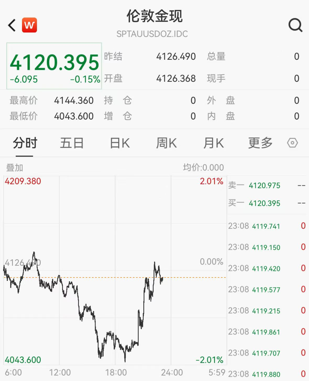 数据发布后,美元指数短线跳水,黄金则直线拉升。现货黄金快速拉升约30美元,收窄跌幅至0.15%,现报4120美元/盎司。