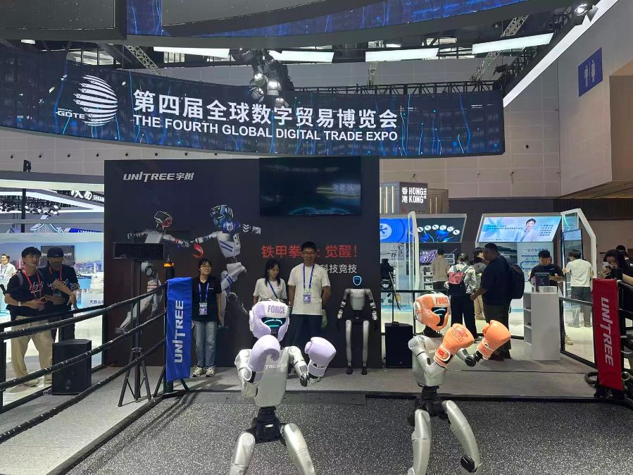 (第四届数贸会上宇树科技的展位,拍摄:柳宁馨)