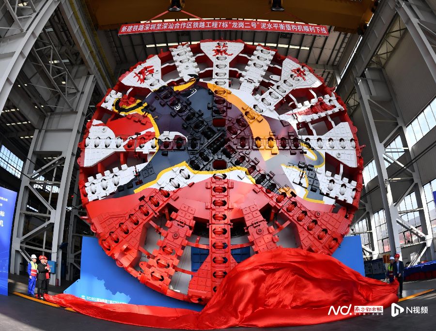 “轨道上的大湾区”再提速。10月24日,刀盘涂装“拓荒牛”图案的超大直径盾构机在湖南长沙顺利下线,将应用于新建深圳至深汕合作区铁路(以下简称“深汕高铁”)龙岗隧道工程,标志着大湾区时速350公里高铁新添隧道掘进利器。据悉,这台大国重器由中铁十四局和铁建重工集团联合研制,具有完全自主知识产权,即将整装入列。