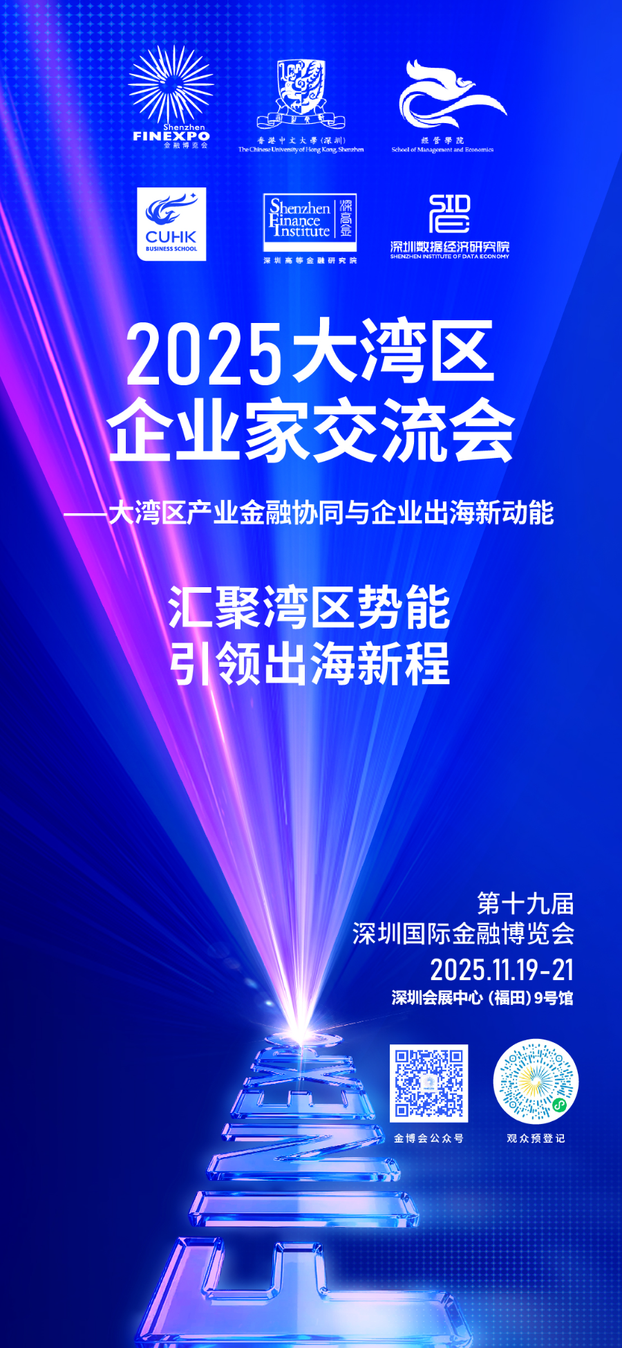 据了解,深圳金博会自创办以来,已成功举办十八届,成为中国规模最大、参展机构最多、覆盖金融领域最广的重要品牌展会之一。2025大湾区企业家交流会作为金博会的重要组成部分,将充分发挥平台优势,促进政产学研各界的深度交流与合作,为推动大湾区产业金融协同发展、培育企业出海新动能贡献智慧和力量,该活动由香港中文大学(深圳)经管学院、香港中文大学商学院、深圳高等金融研究院、深圳数据经济研究院主办,团结香港基金会、深圳市深港澳合作创新研究会协办,深圳市金博会运营有限公司承办。