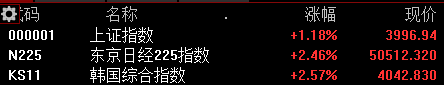 沪指逼近4000点关口,继续刷新年内新高。日本、韩国股市均大涨超2%,日经225指数突破50000点心理关口,韩国综合指数首次突破4000点,今年累计涨幅近70%。