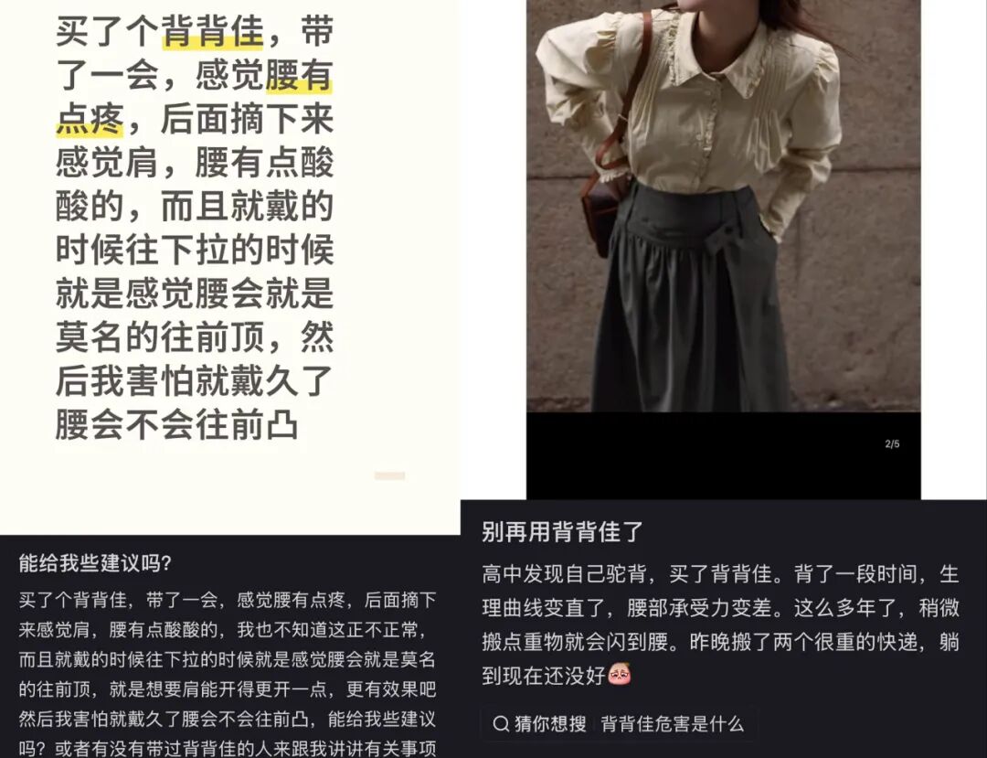 社媒上,有网友在穿戴背背佳后表示,腰部因脊椎过度挺直而酸痛,长期穿戴后导致腰部承受能力变差,“这么多年了,稍微搬点重物就会闪到腰”。