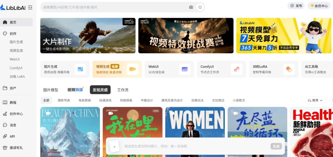 简单来说,它就是个AI创作“工作站”,集合热门、口碑好的AI图片和视频工具,任君挑选。据悉,LiblibAI已收录数万款模型。