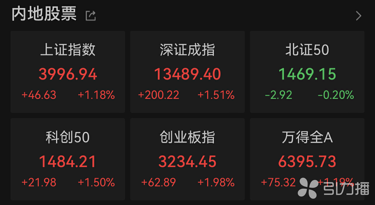 10月27日,A股市场震荡走高,沪指盘中逼近4000点,再创十年新高。截至收盘,A股主要指数全线飘红:上证指数涨报3996.94,涨1.18%,深证成指涨1.51%,创业板指涨1.98%。市场交投活跃度同步升温,沪深两市成交额达2.34万亿元,较前一交易日放量3659亿元,量能放大为行情延续提供有力支撑。