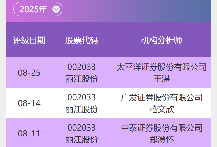 丽江股份评级纵览(近3次)