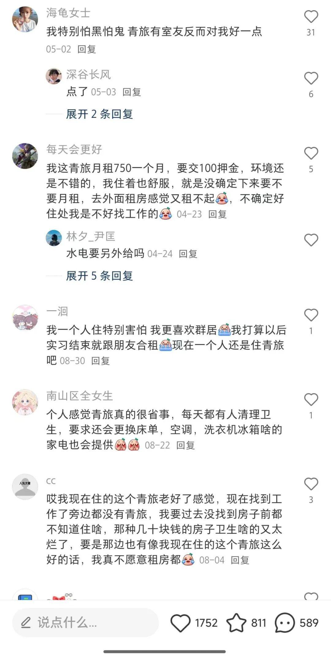 租房需要中介费、需要押金,还要自带床上的行李、自己打扫卫生,对于手里没有多少钱的年轻人,住在青旅这些都不需要,只要住进去就行,生活所需都有。
