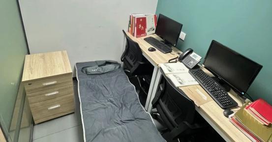在“大厂”,一些人过着这样的生活:他们把办公室当作临时住所,铺上睡袋或折叠床,在此过夜。