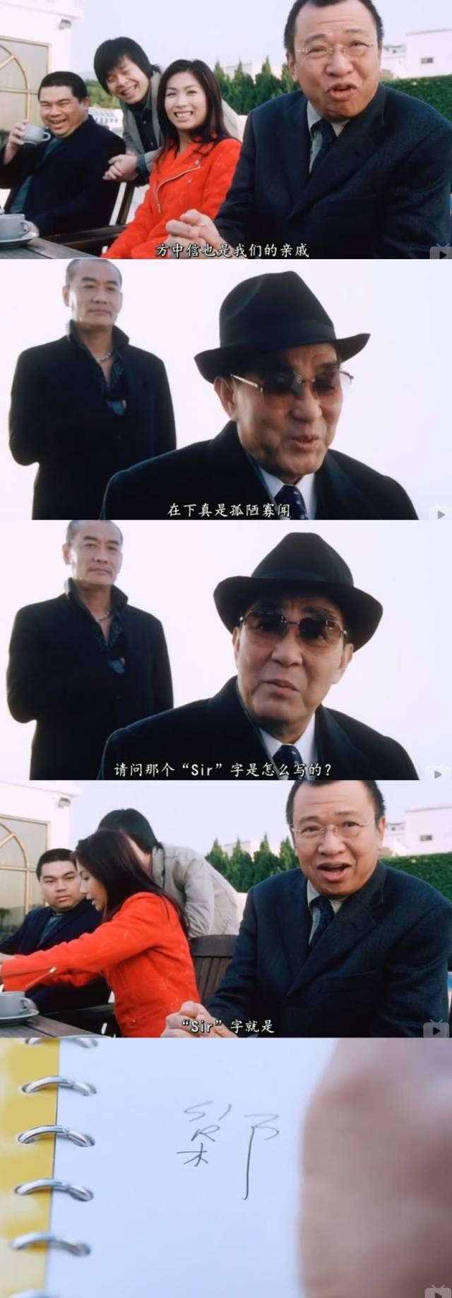 在杨千嬅、吴彦祖等主演的爱情喜剧电影《新扎师妹》中,许绍雄饰演的钟乐海是刑警队的头儿,也是女主角方丽娟(杨千嬅 饰)的上司,贡献了不少笑点。其中最有名的梗当属他为了掩饰身份假称自己的名字是“方中sir”,和方中信有亲戚关系,还特地为此造了一个字。