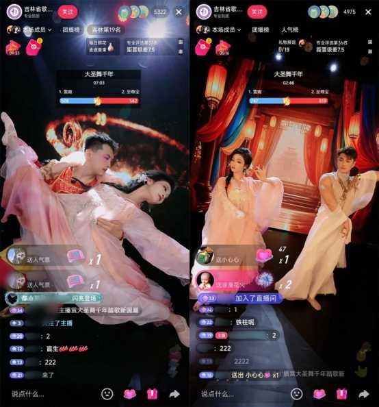 8月11日,吉林省歌舞团与长春文旅达人@雪饼猴合作,在抖音上演了一场“大圣舞千年,踏歌新国潮”的团播。70分钟的演出,吸引了超65万人次观看,峰值在线人数突破1万。