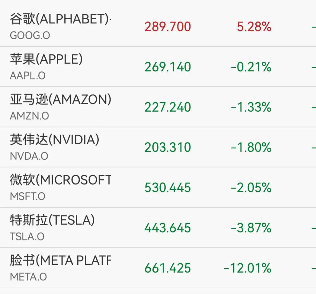 美股科技七巨头普跌。