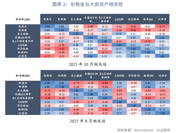 2025年10月,金价冲高回落。美国政府关门、欧日政坛动荡,特别是伦敦白银现货紧张、白银租赁利率大幅飙升共同推升贵金属价格。伦敦银一度相对于纽约银溢价,引发套利交易,纽约以及亚洲地区的白银均涌向伦敦,白银租赁利率自10月13日之后出现回落,不过市场投机热情仍然高涨。10月17日,国内外交易所集体上调黄金白银保证金比例,黄金白银价格高位回落,此轮上涨走势告一段落。