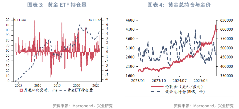 持仓方面,2025年10月黄金ETF净流入76万盎司,流入量高位回落。