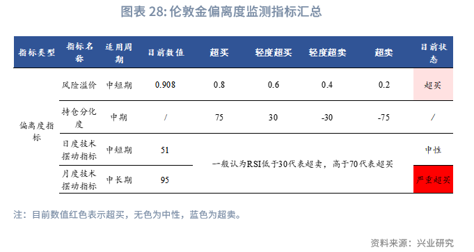 根据前文的分析,伦敦金价格的偏离度监测指标汇总如下: