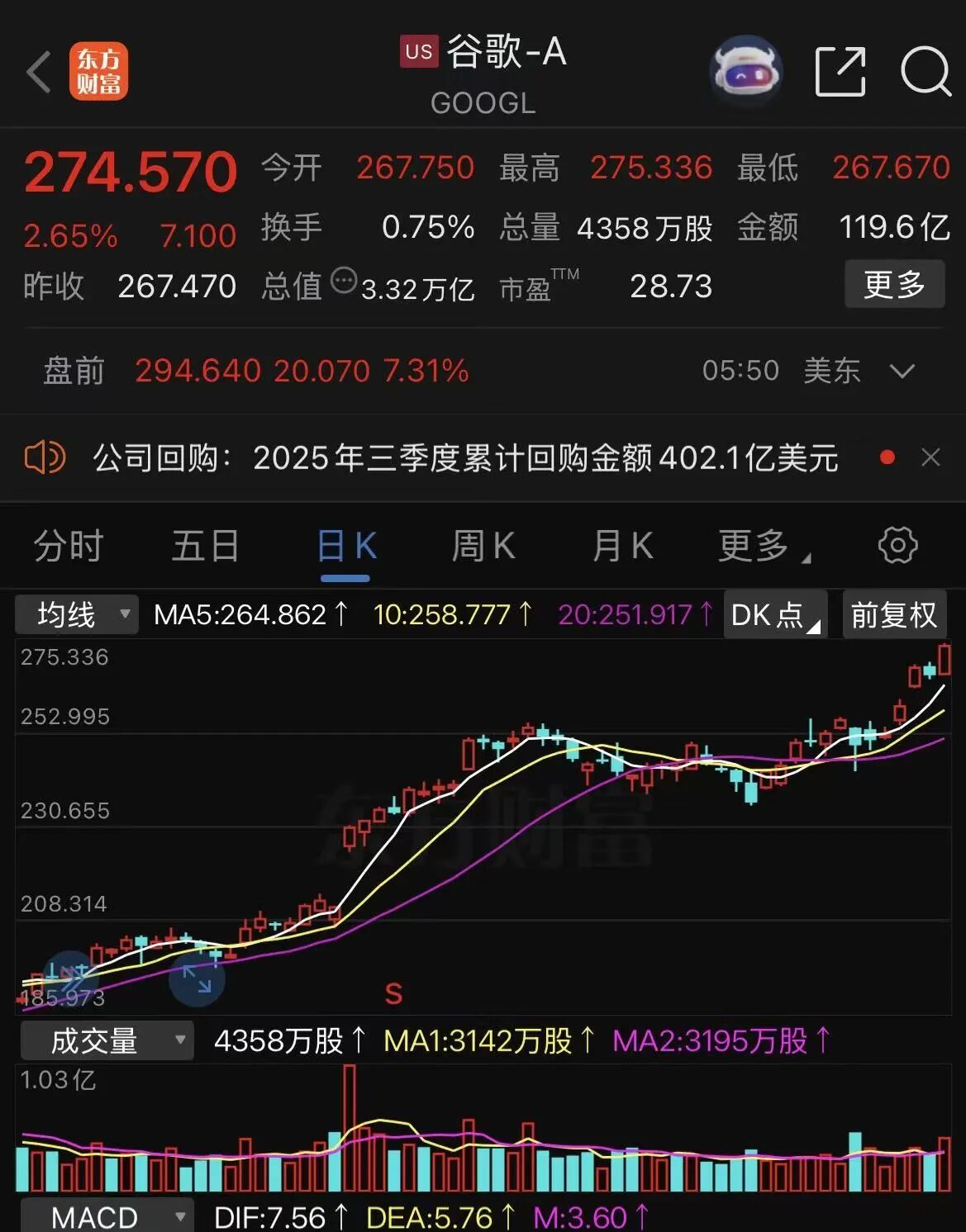 10月30日,谷歌母公司ALPHABET发布最新财报,数据表现全超预期,尤其是云业务保持高增速,助力谷歌的季度营收首次突破1000亿美元。其股价当晚再创新高,市值达到3.32亿美元。摩根大通最新将谷歌目标股价从300美元上调至340美元。#谷歌财报