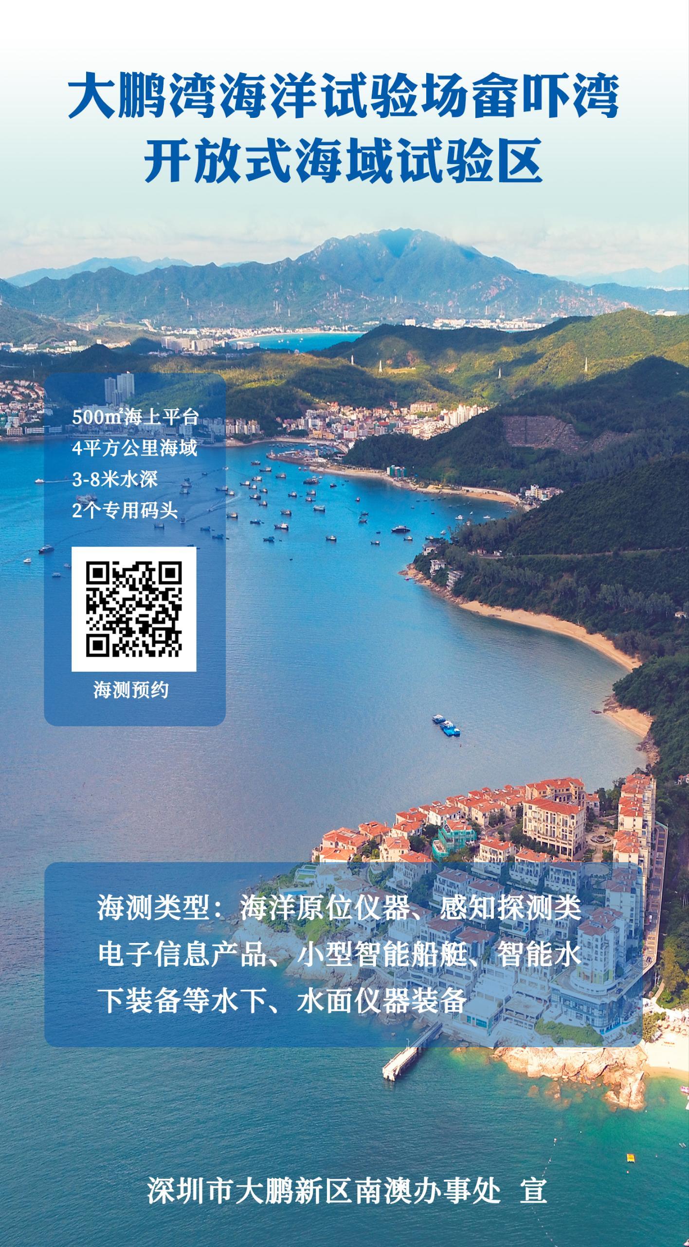 据介绍,大鹏新区是深圳自然资源禀赋最好、海洋资源最优、环境质量最佳的区域。近年来,大鹏新区加速推进深圳海洋大学、深海科考中心、海洋博物馆建设,推动海洋综合试验场、极地大洋保障基地等海洋平台落户大鹏,布局建设深圳水下机器人产业园、国际海缆登陆站、全球海洋大数据(智算)中心等重点项目,并于2025年发布深圳首个海洋综合试验场建设计划,构建“一基地、多试验区”体系,打造海洋科技和海洋产业发展的“超级实验室”。目前,土洋、畲吓湾开放式海域试验区已正式运营。