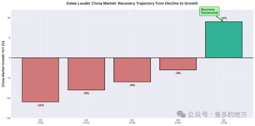(图注:雅诗兰黛中国市场从连续下滑到强劲反弹,Q1 FY26实现9%增长)