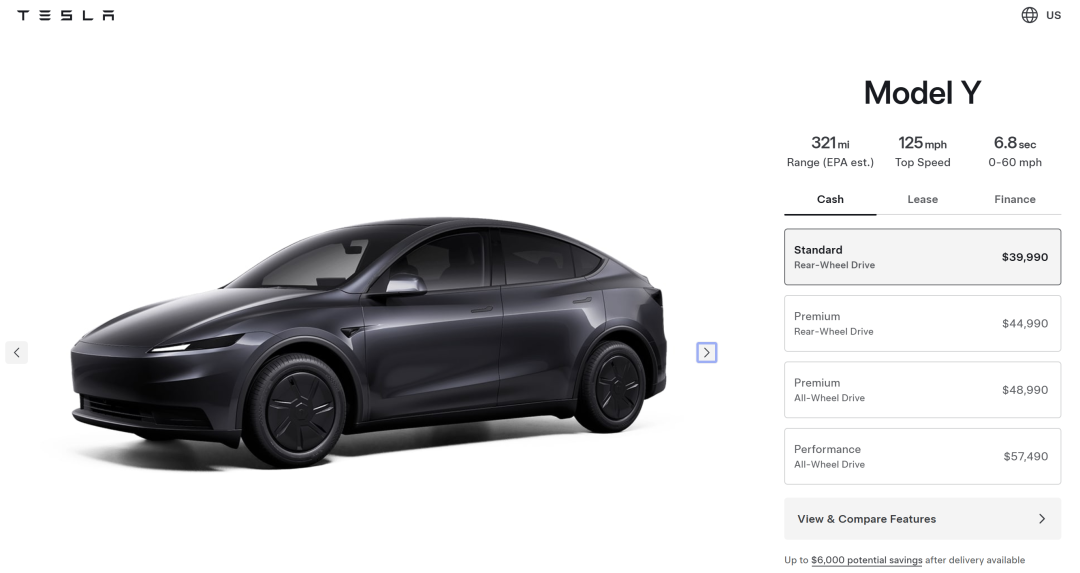 10月初,特斯拉在北美市场推出了Model Y Standard和Model 3 Standard,起售价分别为3.999万美元和3.699万美元,被称为“特斯拉史上最便宜新车”。