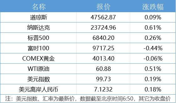 1、美国三大股指小幅收涨,道指涨0.09%,标普500指数涨0.26%,纳指涨0.61%。亚马逊涨超9%,雪佛龙涨逾2%,领涨道指。万得美国科技七巨头指数涨0.69%,特斯拉涨近4%,脸书跌近3%。中概股多数上涨,阿特斯太阳能涨近16%,奇富科技涨超13%。科技巨头强劲财报提振看涨情绪,缓解市场对AI投资过热的担忧。本周,道指涨0.75%,标普500指数涨0.71%,纳指涨2.24%。10月份,道指涨2.51%,标普500指数涨2.27%,纳指涨4.7%。其中,道指、标普500指数月线6连涨,纳指月线7连涨。