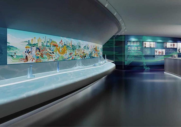 第四展区,用“一片海的奔涌”作为导入,以“海”这一超级符号,带出广东体育产业和“体育+”的蓬勃发展景象。