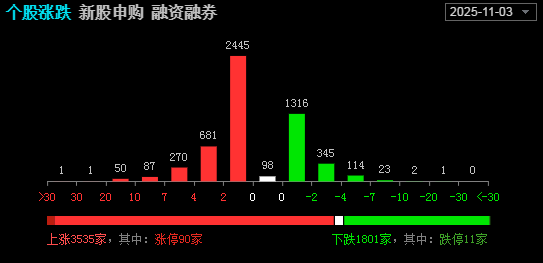 全市场3535只股票上涨,其中90只涨停,展现出一定的活跃度。