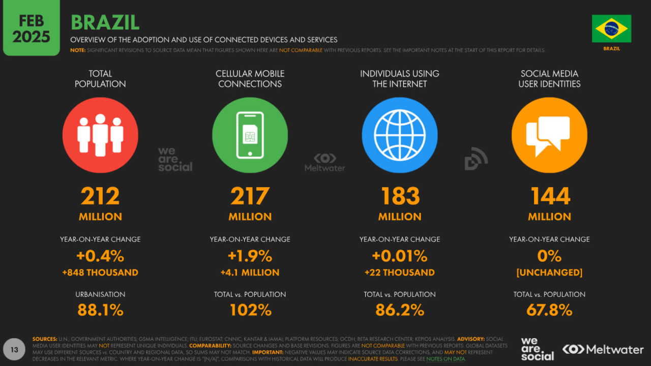 据Meltwater数据,巴西是世界上最热衷于使用社交媒体的人群之一,每天人均使用智能手机的时长为5小时25分钟,在全球排名第三。