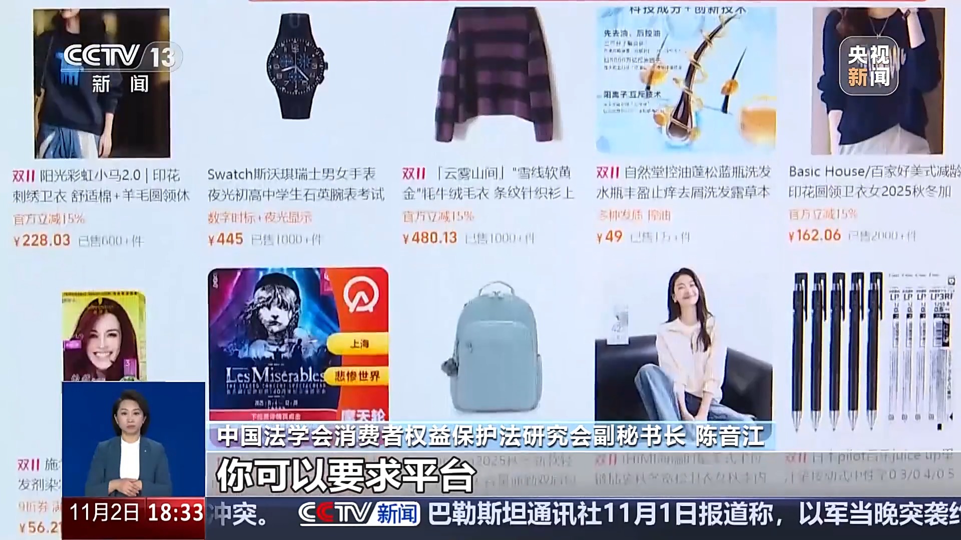 中国法学会消费者权益保护法研究会副秘书长 陈音江:先收集好这种证据,跟商家去协商解决。在必要的时候,你也可以要求平台去协助你提供相应的一些证据,比如说他有一些宣传的页面,因为商家改了,但平台它是有保存的。还有一个就是说如果你找不到商家的有效联系方式的,你可以要求平台来提供商家的有效联系方式。