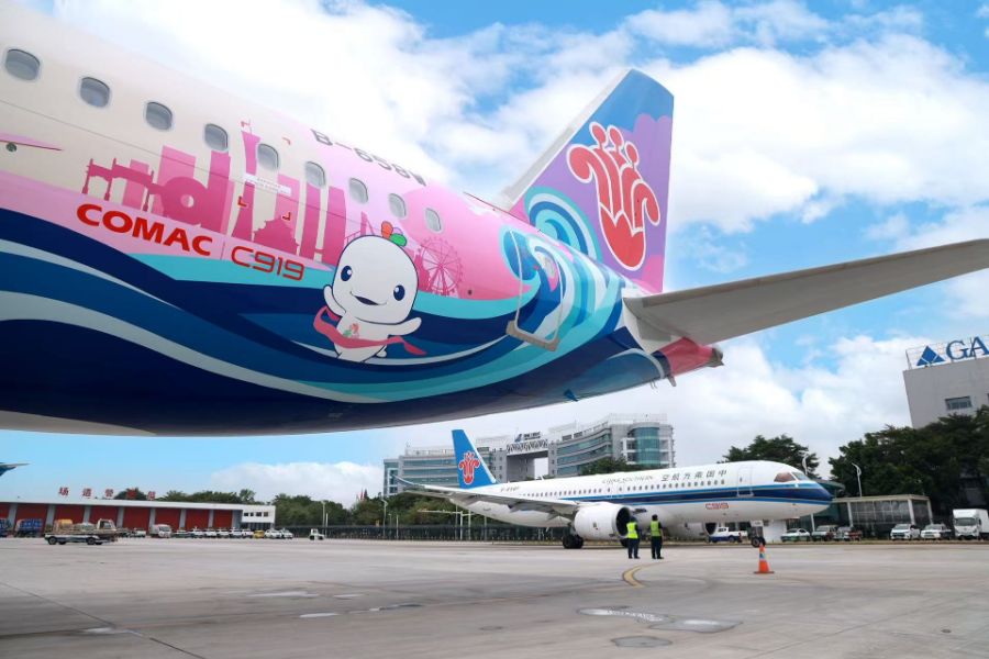 11月4日12点27分,国内首架C919十五运会彩绘飞机“大美湾区”号搭载157名旅客从广州白云国际机场顺利起飞,前往上海虹桥国际机场,该飞机是中国南方航空第7架C919国产大飞机,执飞广州-上海虹桥往返航线。此次“大美湾区”号彩绘机的首航,既是国产大飞机商业化运营的重要成果,也是中国民航携手国家重大体育盛会的创新实践。