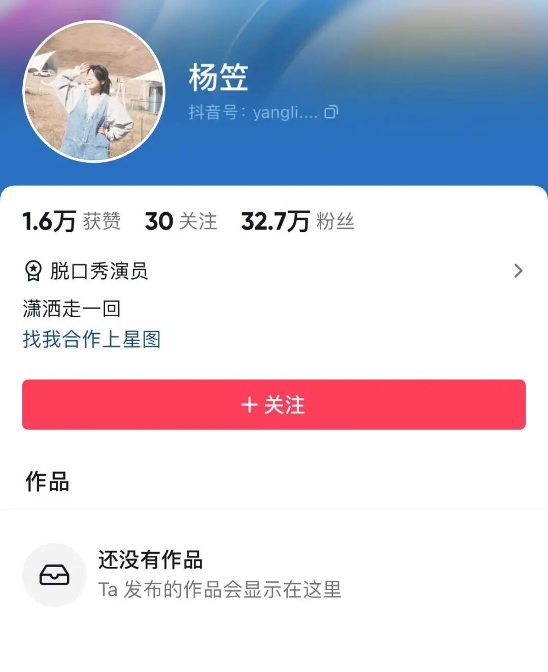 11月4日,南都记者搜索发现,脱口秀演员杨笠的抖音账号被清空,该账号粉丝数32.7万,获赞1.6万,显示“还没有作品”。