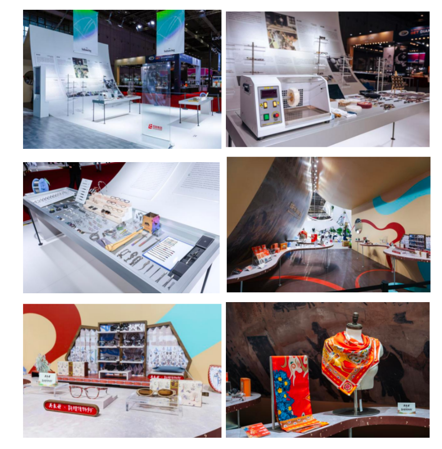 “匠心一触”展区聚焦匠心工艺与材料创新。进博会期间,日本鲭江NISSEY公司最新的材料研究成果“循环再生钛”于此迎来海外首发。针对眼镜架的常用材料钛金属回收难的行业痛点,该材料突破技术壁垒,实现资源高效循环利用,不仅兼顾高强度、耐腐蚀特性,在经济产业、技术革新、资源环境及可持续发展等多个维度为眼镜材料革新开辟新径。在现场,代表着全球高端眼镜制造技术的日本鲭江眼镜,为观众呈现金属眼镜“模具制造-切削-冲压-手工抛光”的全链路匠心工艺,体现从设计到精密加工的行业顶尖水准。