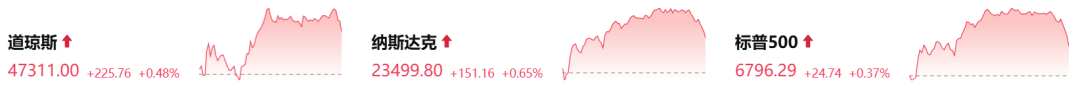美东时间周三,美股三大指数集体收涨。纳指涨0.65%,道指涨0.48%,标普500指数涨0.37%。