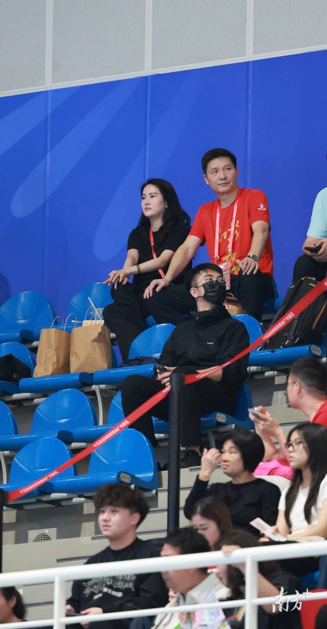 值得一提的是,全红婵在国家队的教练、奥运冠军陈若琳也现身看台,观看爱徒的比赛。全红婵比赛期间,陈若琳面带微笑开启“紧盯”模式。