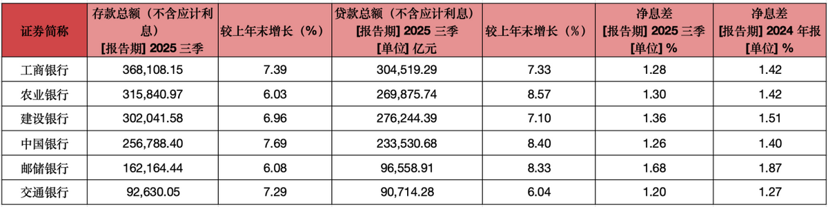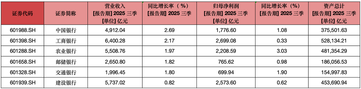 目前,六大国有银行2025年三季报已全部披露完毕。