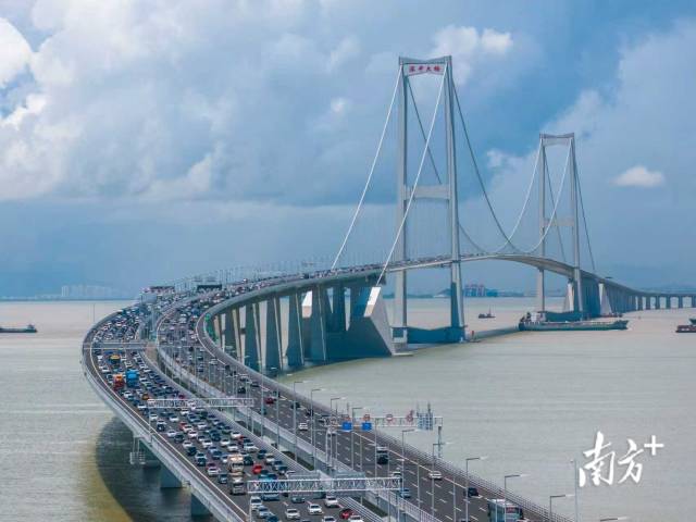 今年1月至10月,珠江口跨江跨海通道(黄埔大桥、南沙大桥、虎门大桥、深中通道、黄茅海跨海通道)车流量共计1.37亿车次,同比增长10.52%,较全省高速车流增长水平高出一倍。其中,深中通道总车流2808.56万辆,日均车流量9.24万车次,单日最高车流量为今年5月1日的18.16万车次,有效缓解珠江口传统通道拥堵压力。此外,港珠澳大桥车流量共计432.09万车次,同比增长19.6%。